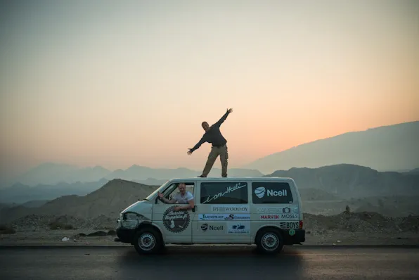 The route took them through Russia, Kazakhstan, Kyrgyzstan, China, Pakistan, and India before finally reaching Nepal. Along the way they faced border crossings, mountain passes at over 4,500 meters altitude, car breakdowns, and countless adventures.
